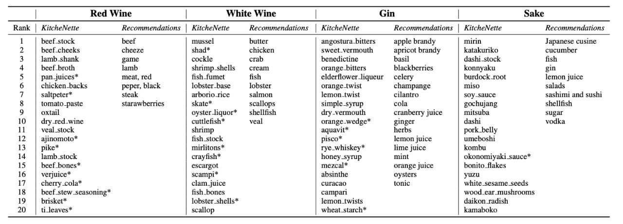 According to their paper, KitchenNette only needs to input two foods and it will give a judgment score on whether they are suitable for pairing, and the result is better than other models.