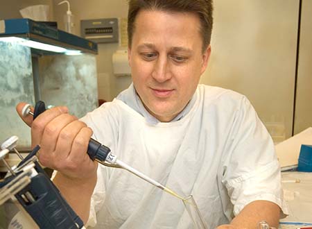 Nikolai Petrovsky conducts vaccine research in the laboratory