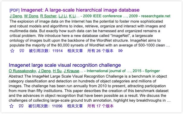 Another paper describes the ImageNet data challenge and research progress in the field of object recognition. ImageNet Large Scale Visual Recognition Challenge, the number of citations has also reached an astonishing 11056 times.