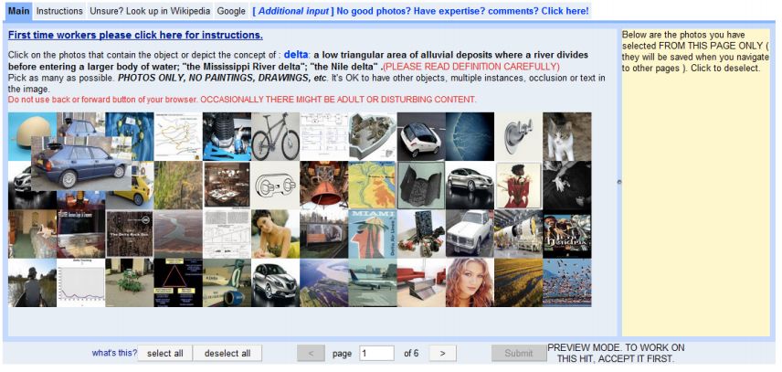 Amazon Mechanical Turk interface for image classification