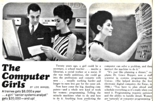 In 1967, Cosmopolitan magazine published an article titled "The Computer Girls", which mainly expressed the view that it is natural and advantageous for women to engage in computer programming. It mentioned that "now that the dazzling big computers have come, there is also a new profession for women: "programming"