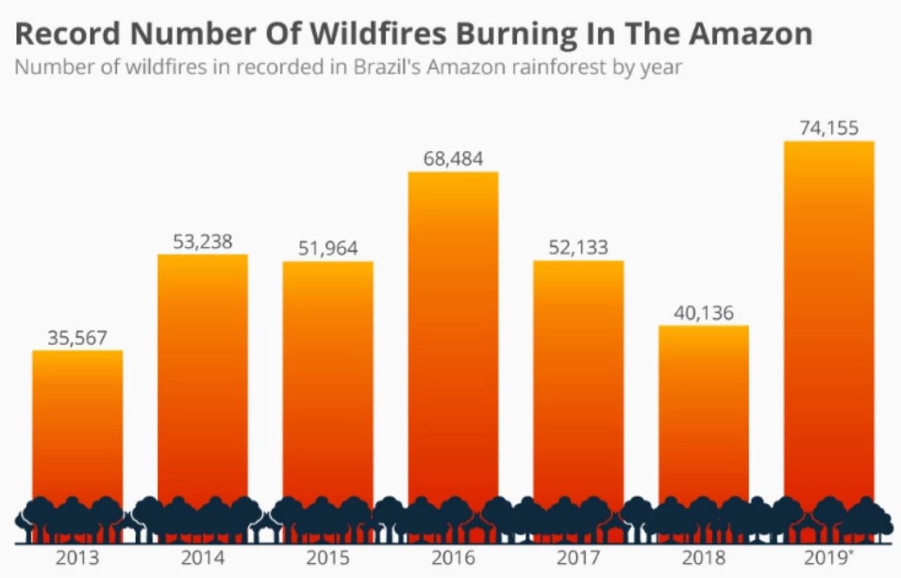Not only that, the number of fires in the Amazon rainforest this year has hit a record high since 2013, and so far it has experienced More than 74,000Fires, twice as many as in 2018.