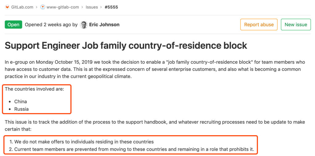 This statement even caused surprise among GitLab’s internal staff. Its global risk and compliance director also said: “I am confused. Why should these countries be listed separately? There is no law requiring us to do this, right?”