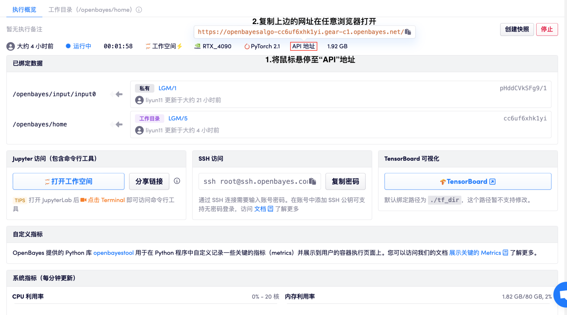 1. After cloning the tutorial container and successfully starting it, follow the instructions in the figure below to enter the operation page: