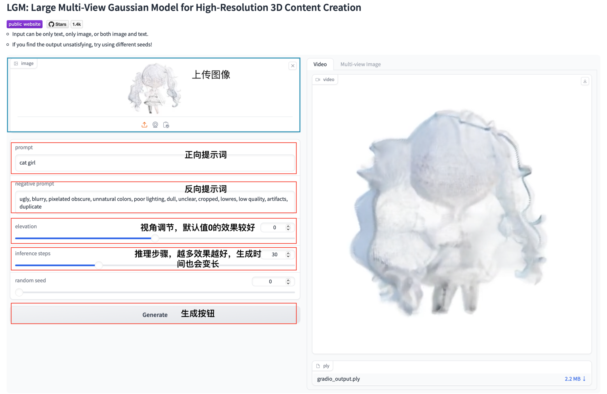 This tutorial provides a demo implementation of LGM. LGM, or Large Multi-View Gaussian Model, is an innovative framework for generating high-resolution 3D models from text prompts or single-view images. It was developed by researchers from Peking University, Nanyang Technological University's S-Lab, and the Shanghai Artificial Intelligence Laboratory in a paper... LGM: Large Multi-View Gaussian Model for High-Resolution 3D Content Creation The LGM framework, proposed in this paper, uses multi-view Gaussian features as 3D representations and an asymmetric U-Net as the backbone network to achieve high-fidelity and efficient 3D model generation. This method can generate 3D objects within 5 seconds and increases the training resolution to 512, thus achieving high-resolution 3D content generation.