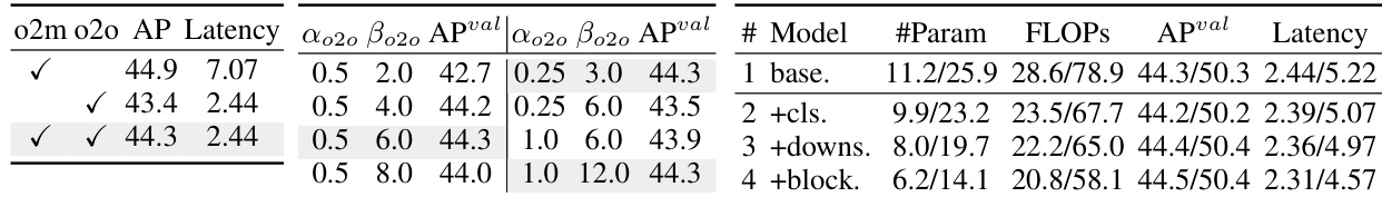 - Consistent matching metric improves AP-latency trade-off by aligning supervision between one-to-many and one-to-one heads, eliminating the need for hyperparameter tuning.