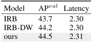 The authors use a comparison of different model variants to evaluate the effectiveness of their proposed Compact Inverted Block (CIB) design. Results show that their CIB-based model achieves a 0.8% AP improvement over IRB-DW while maintaining similar latency, demonstrating the effectiveness of their block design in enhancing performance without increasing computational cost.