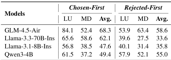 - RMs exhibit strong consistency under outcome-based criteria but show positional bias and inconsistency under process-based criteria, where both outcomes are correct but trajectories differ.