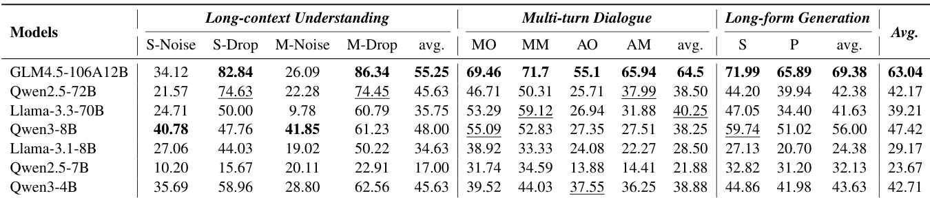 Long-form Generation (based on LongProc, LongGenBench, LongEval):