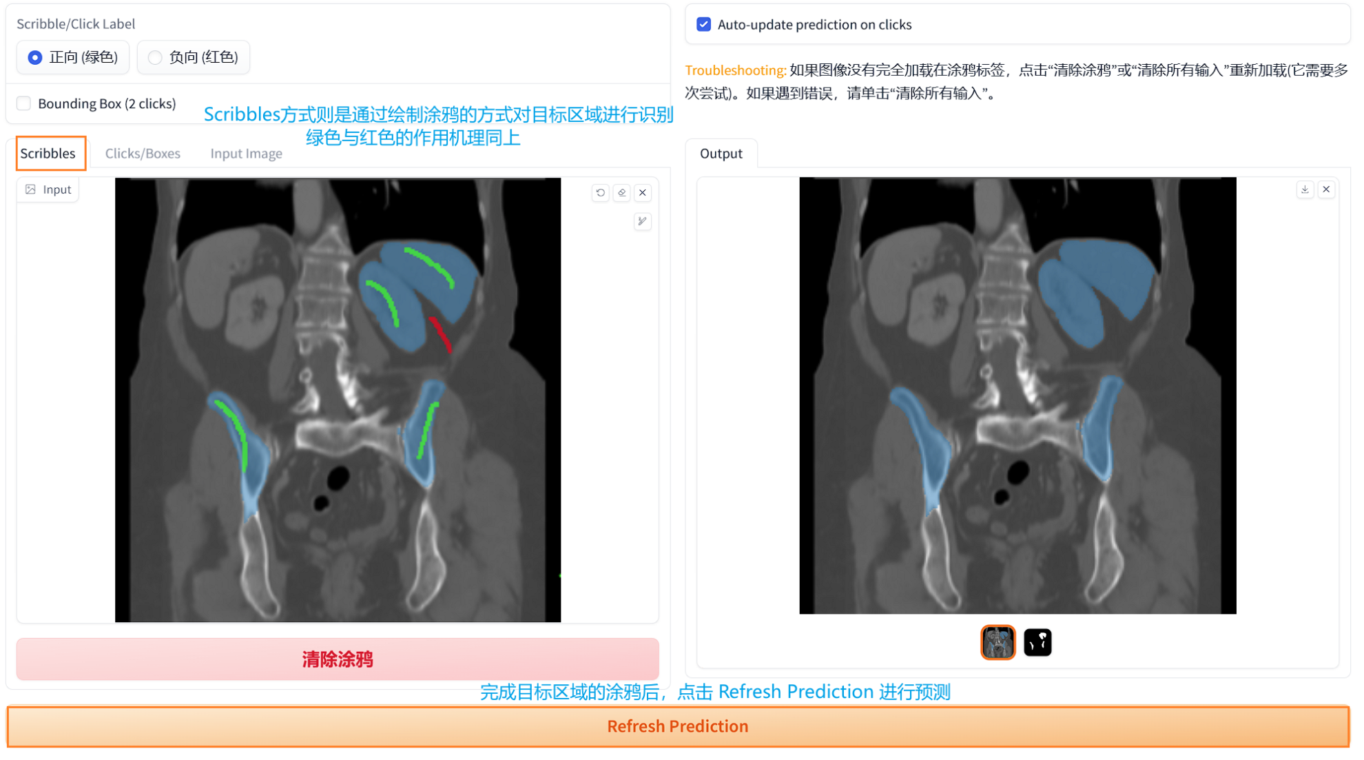 • Efficient labeling: Through simple scribble operations, the workload of manual labeling is greatly reduced, which is particularly suitable for medical scenarios that require precise structural depiction.