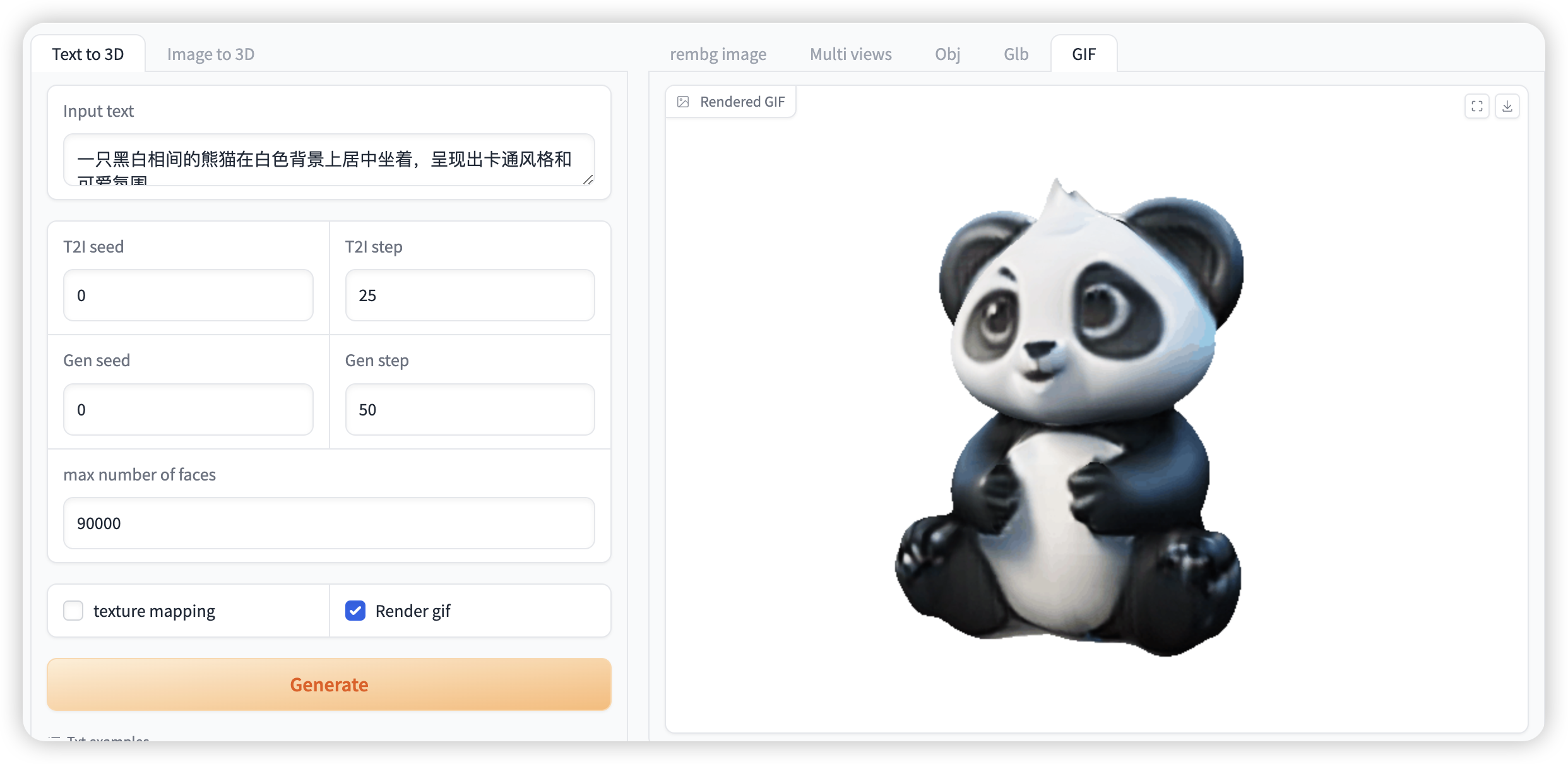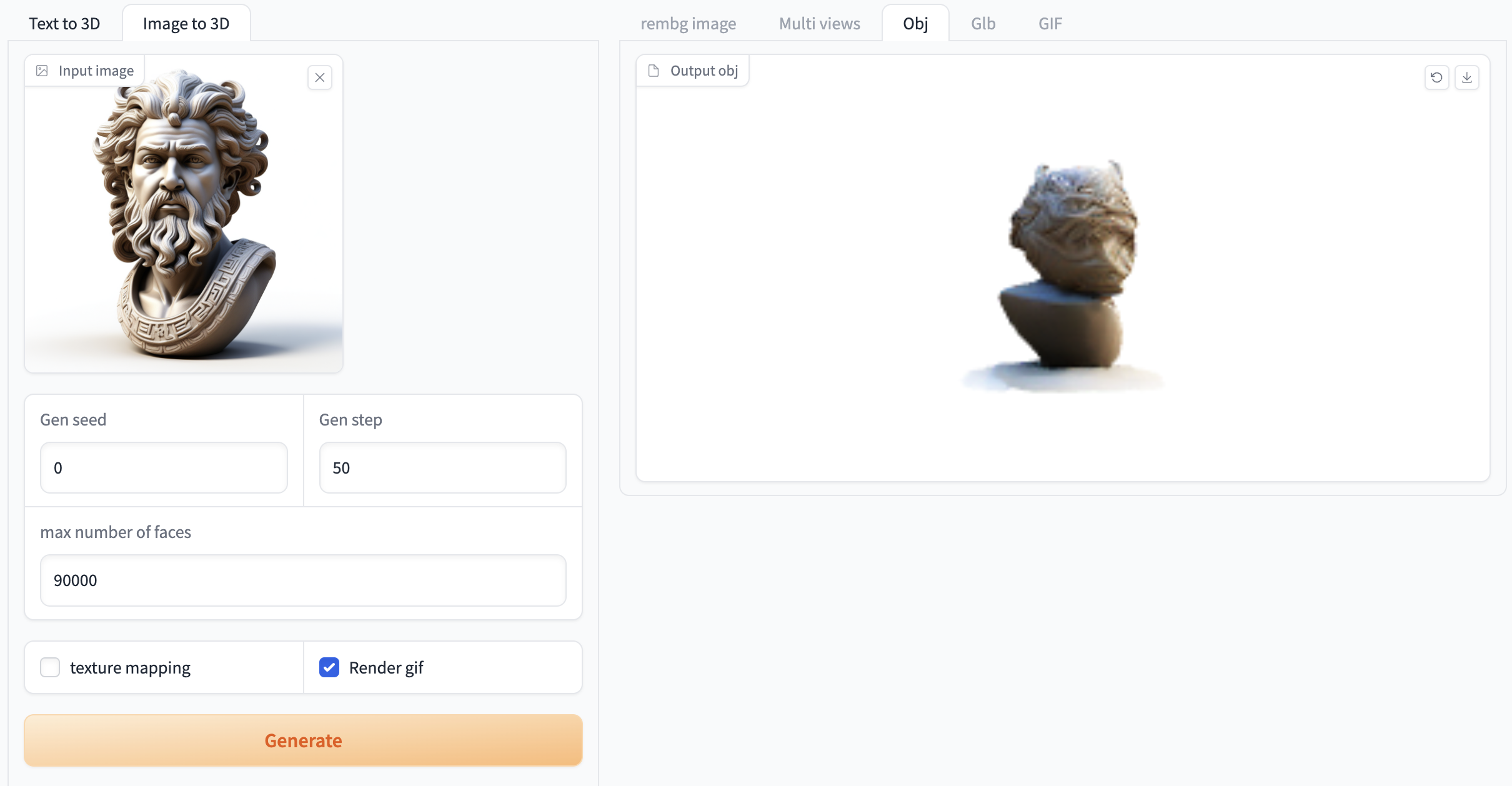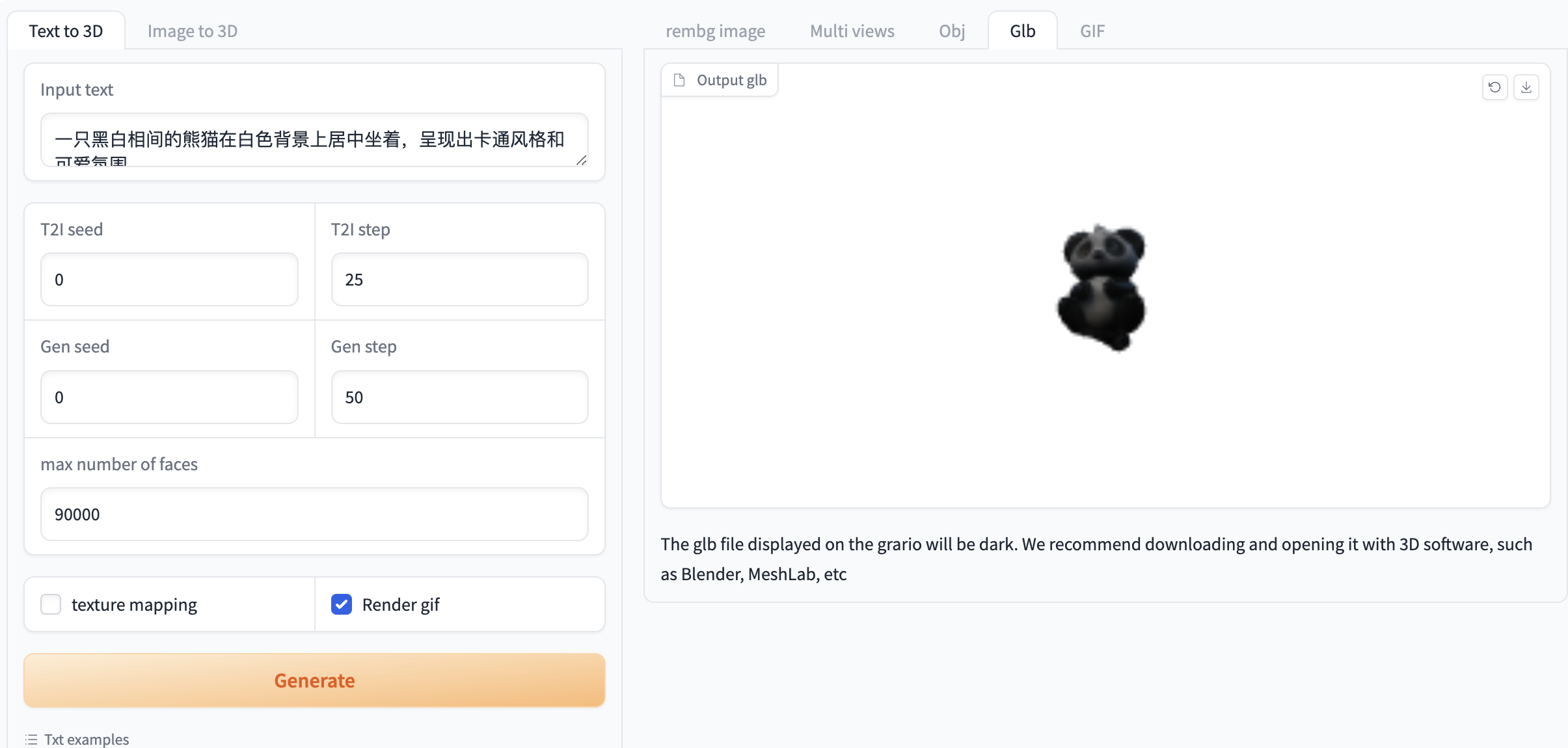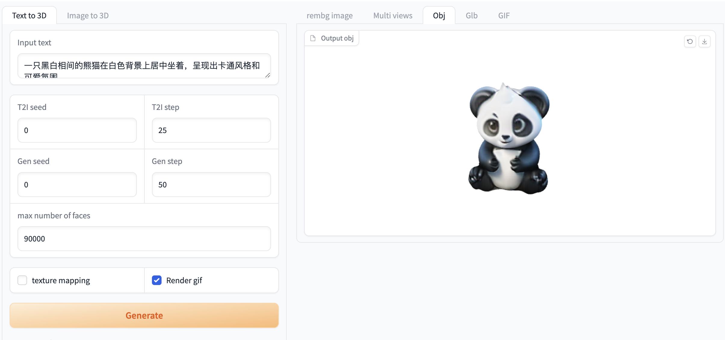 This tutorial is a lightweight version of Hunyuan3D-1.0. It uses 3 models to make the web interface include 2 functions:
