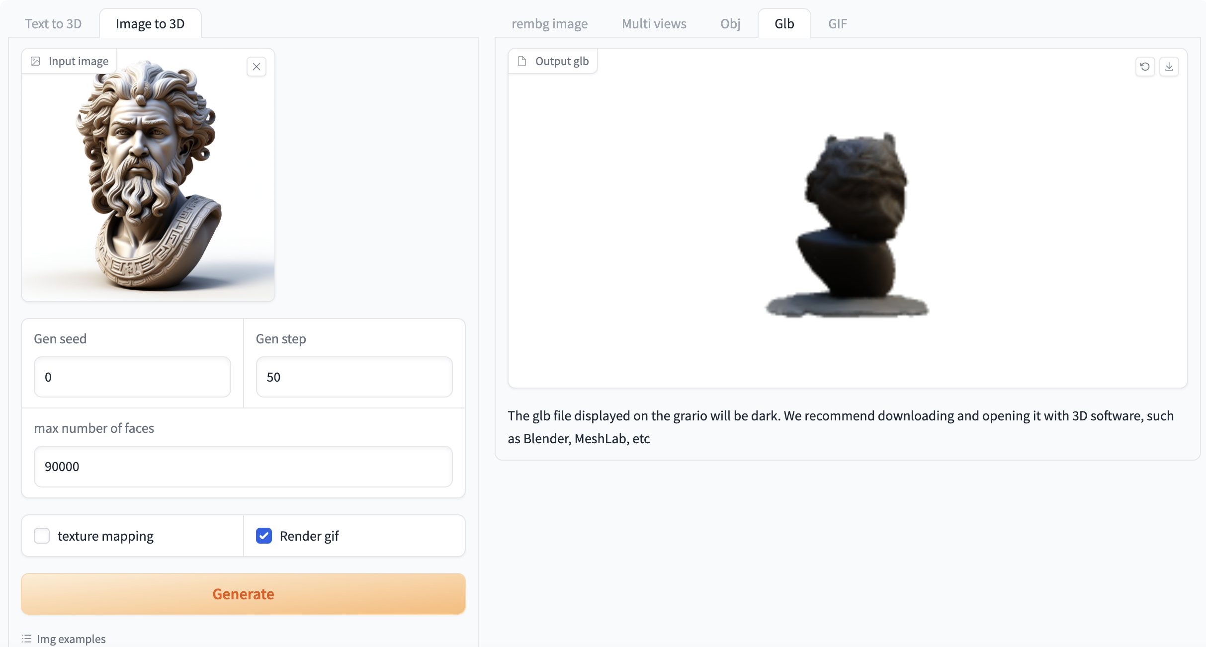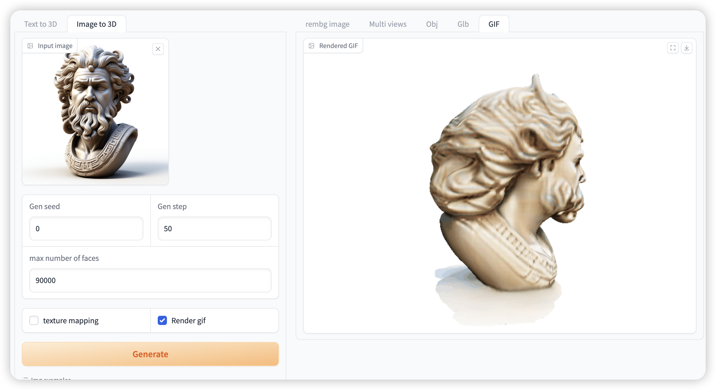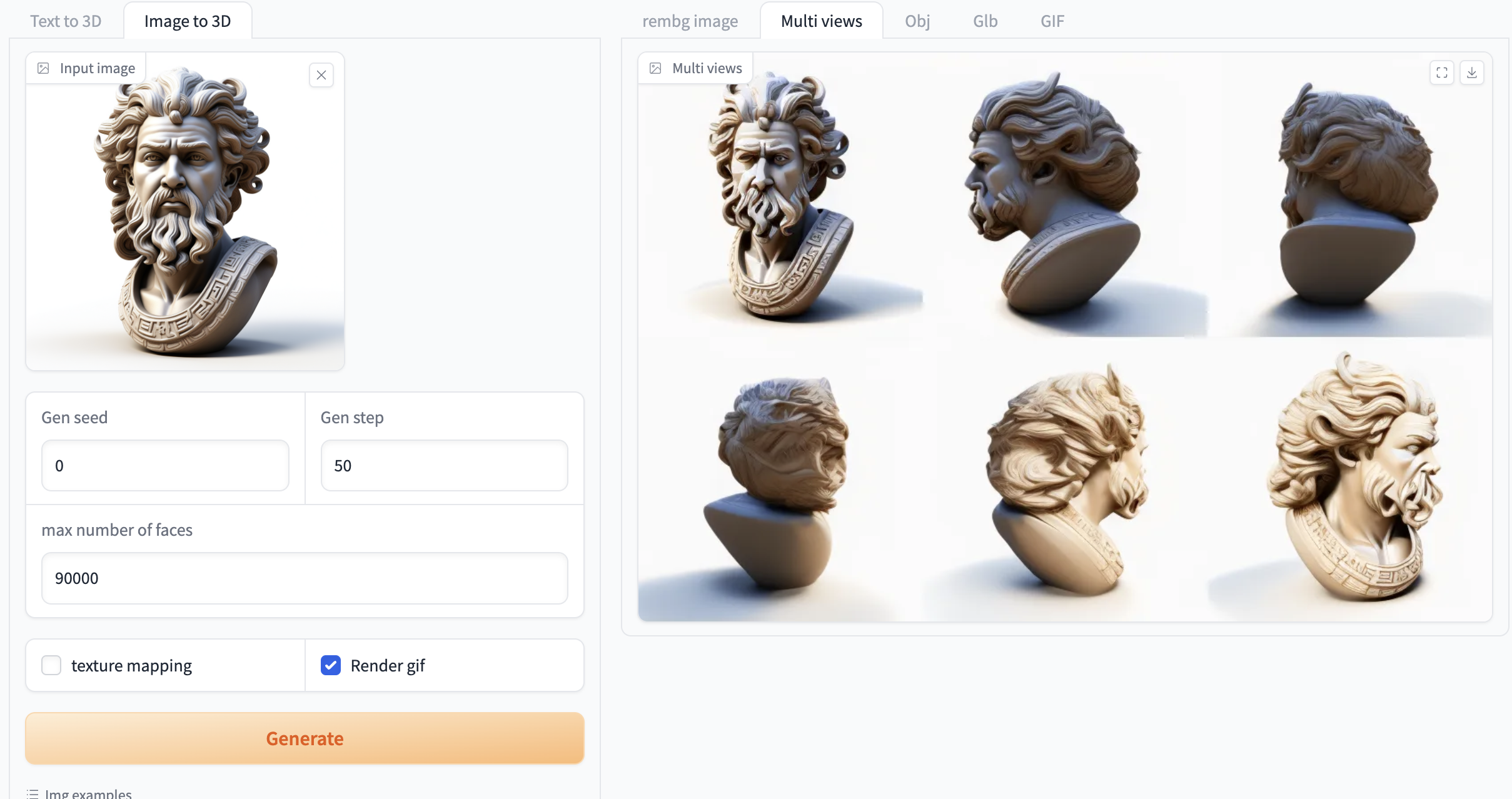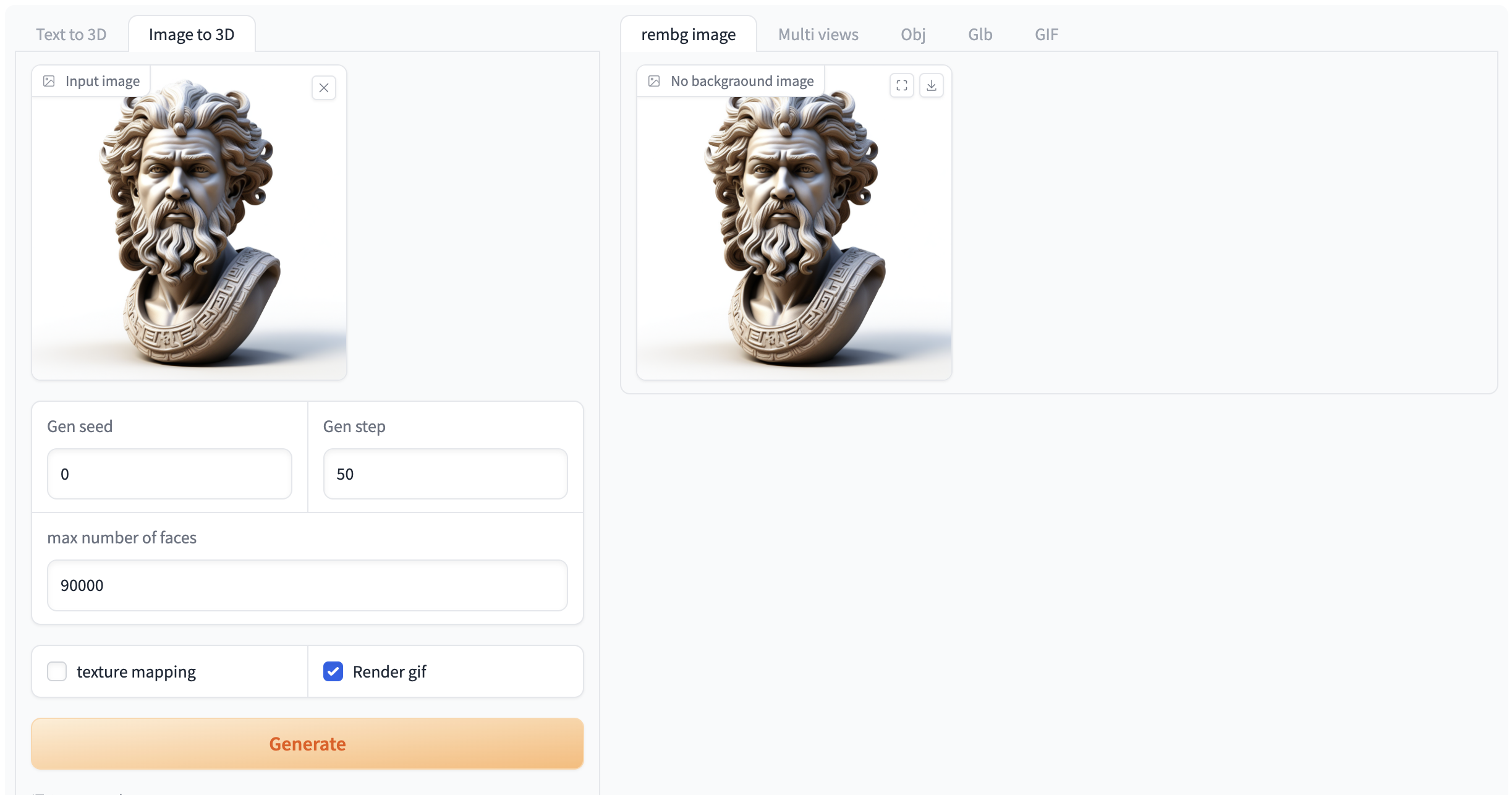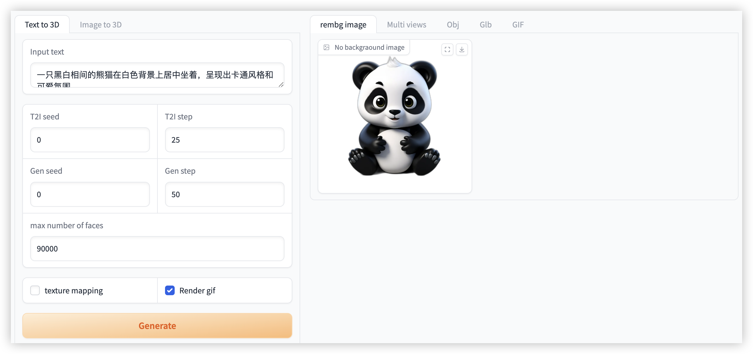 This tutorial is a lightweight version of Hunyuan3D-1.0. It uses 3 models to make the web interface include 2 functions: