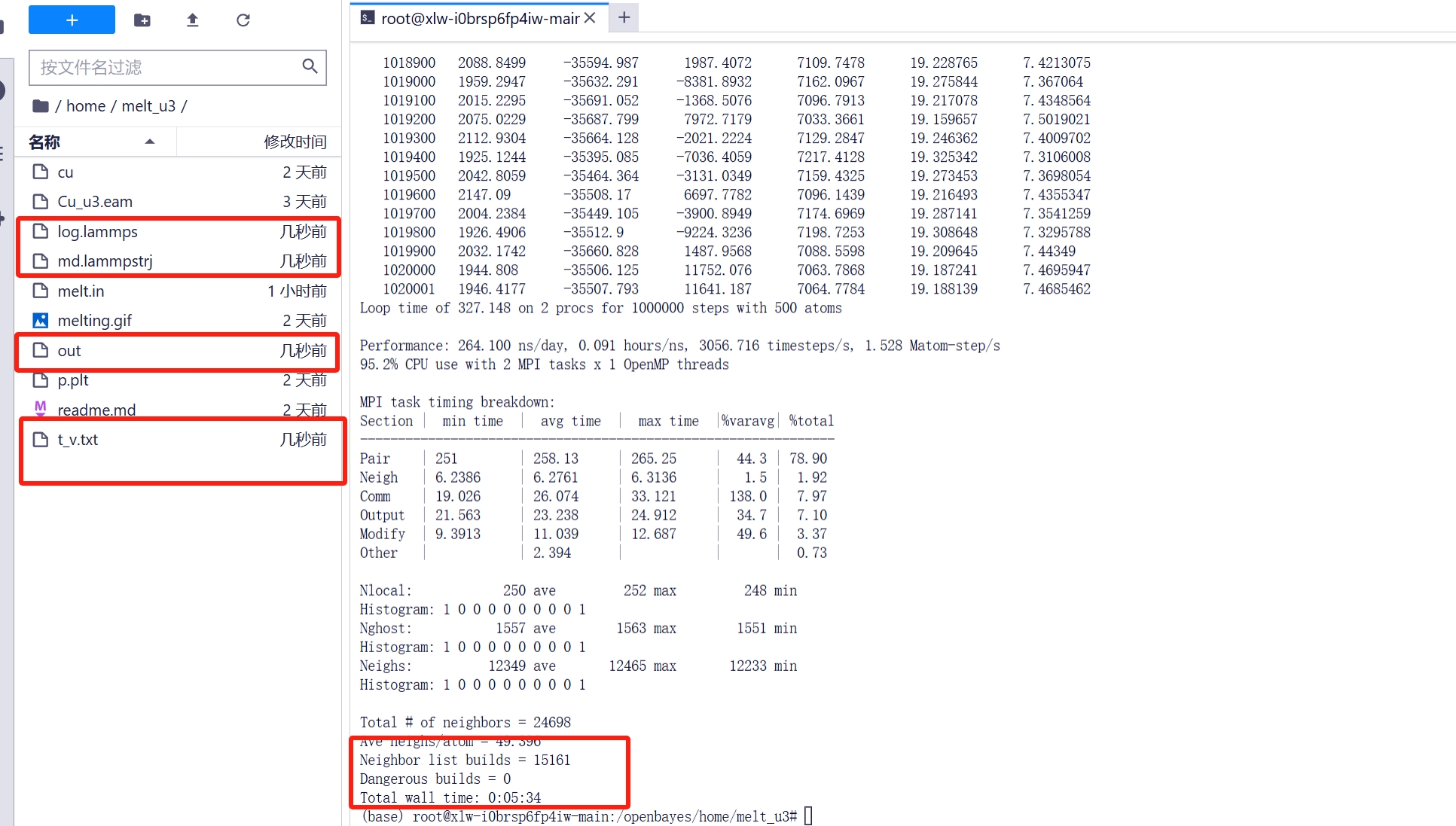 2.7 The screen output will be synchronized in the out file. The total running time is about 5 minutes.