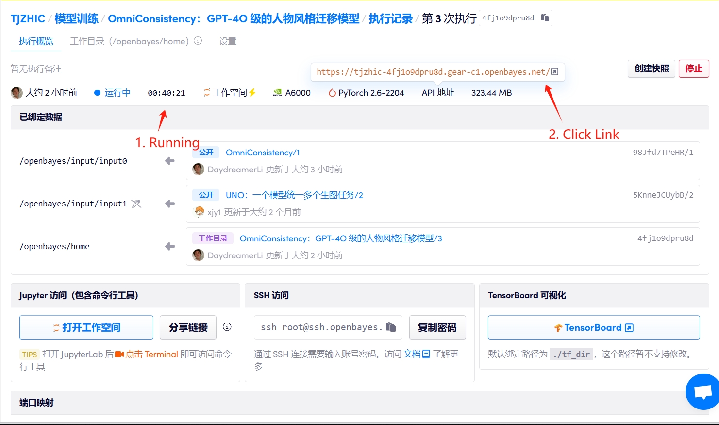 If you use Custom LoRA, the model needs time to be downloaded online, so it takes longer to generate. Please wait patiently. In addition, the model download may fail due to network problems during the model download process. It is recommended to restart the container and download the model again.