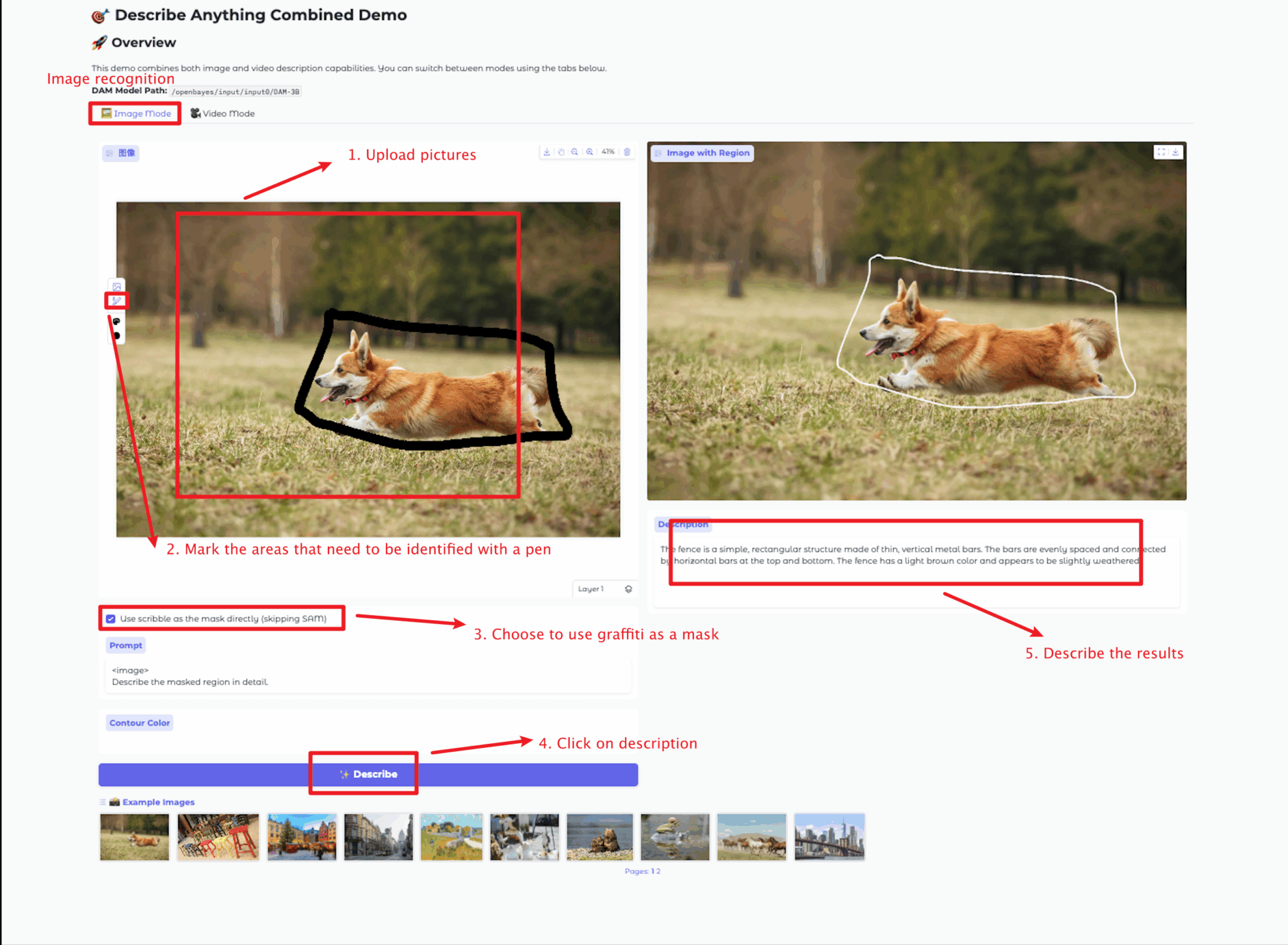 Describe Anything Model (DAM) is an innovative image and video description model jointly developed by NVIDIA, UC Berkeley, and UCSF teams and released in 2025. The model can generate detailed descriptions based on user-specified areas (points, boxes, scribbles, or masks). For video content, you only need to annotate the area on any frame to get a complete description. The related paper results are "Describe Anything: Detailed Localized Image and Video Captioning".