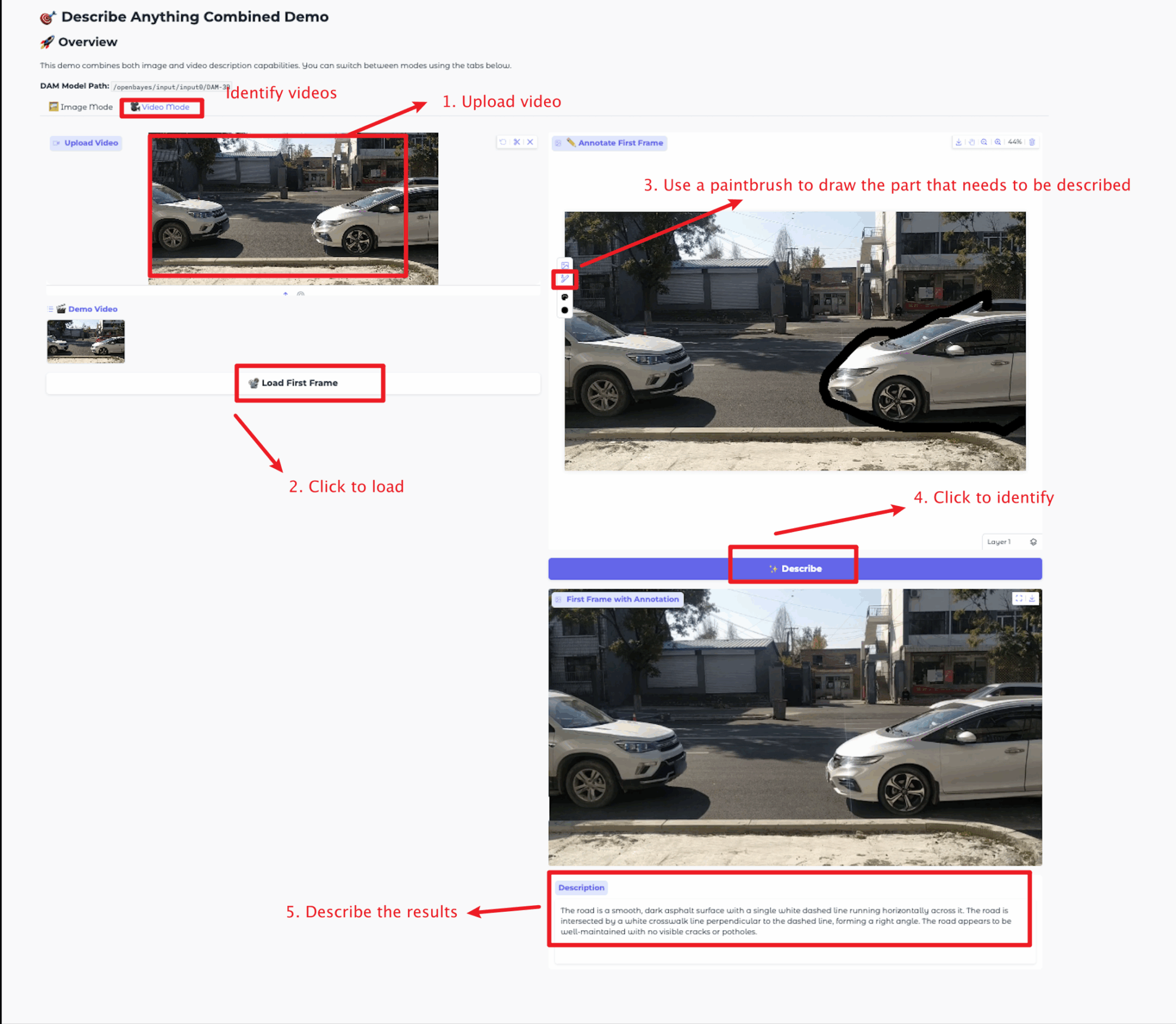 The image size should not exceed 5 MB, the video length should not exceed 20 seconds, and the video size should not exceed 5 MB, otherwise it may cause the model to run slowly or report an error. Please select the area for description reasonably.