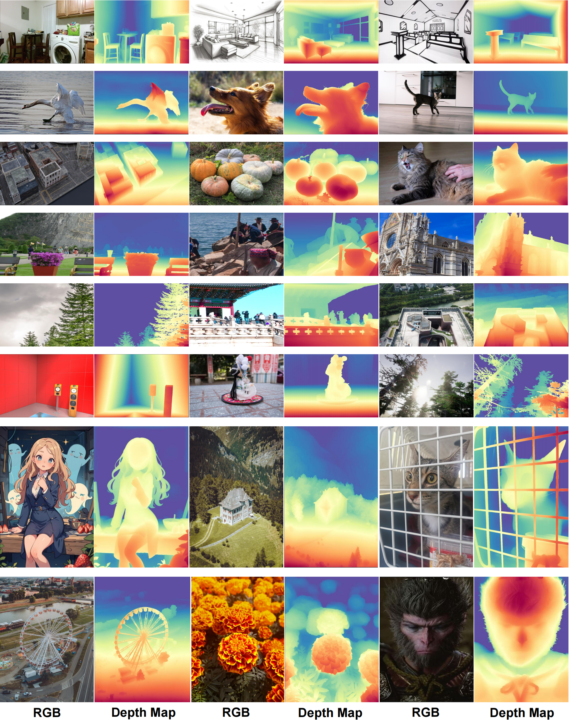 - The inference speed is more than 10 times faster than that of Diffusion-based models (such as Marigold), supporting real-time applications.