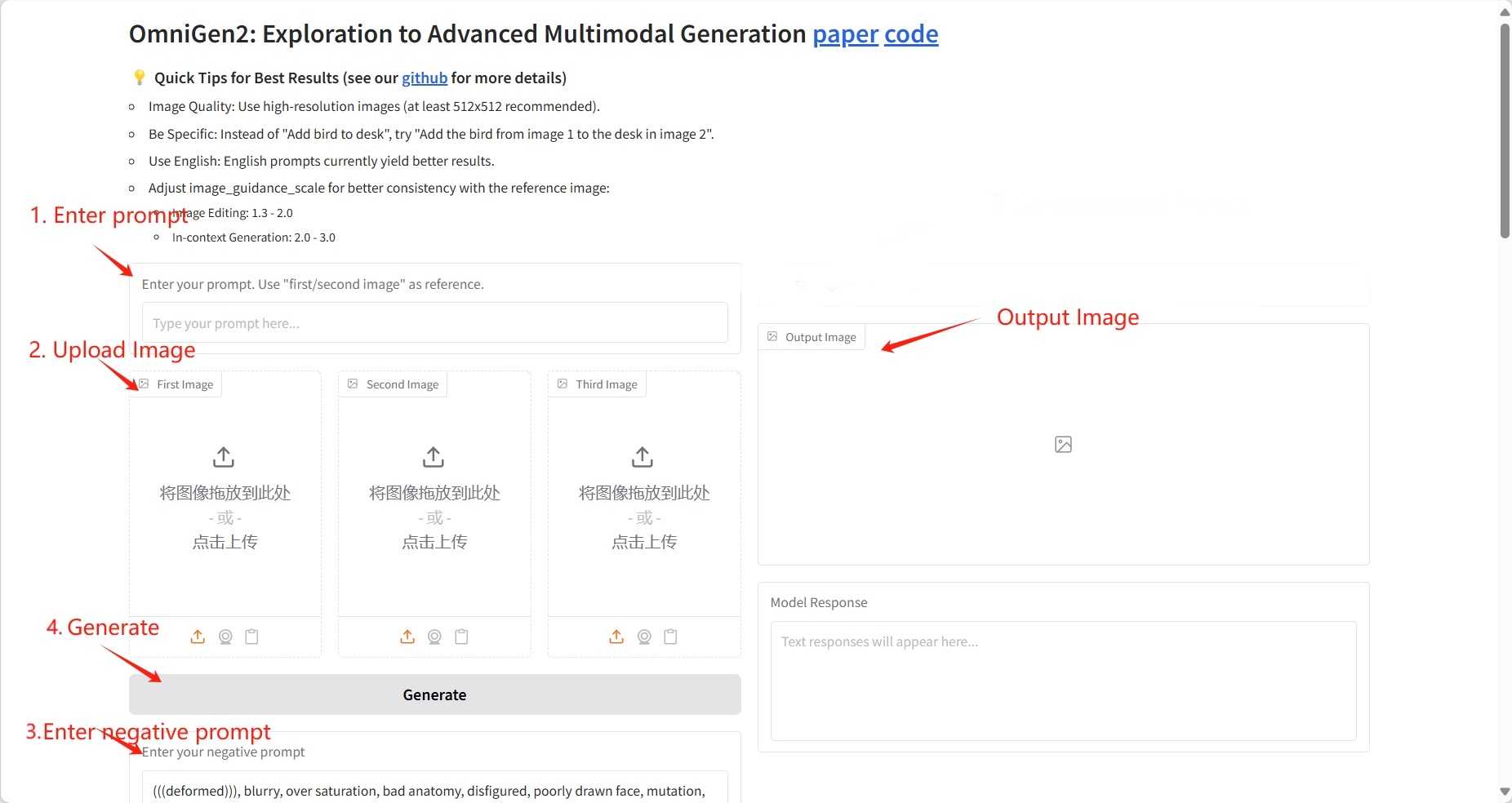 OmniGen2 is an open source multimodal generation model released by the Beijing Academy of Artificial Intelligence (BAAI) on June 16, 2025. It aims to provide a unified solution for a variety of generation tasks, including text-to-image generation, image editing, and context generation. Unlike OmniGen v1, OmniGen2 designs two independent decoding paths for text and image modalities, using non-shared parameters and separate image segmenters. This design enables OmniGen2 to build on existing multimodal understanding models without having to re-adapt VAE inputs, thereby retaining the original text generation capabilities. Its core innovation lies in the dual-path architecture and self-reflection mechanism, which has become a new benchmark for current open source multimodal models. The relevant paper results are "OmniGen2: Exploration to Advanced Multimodal Generation".
