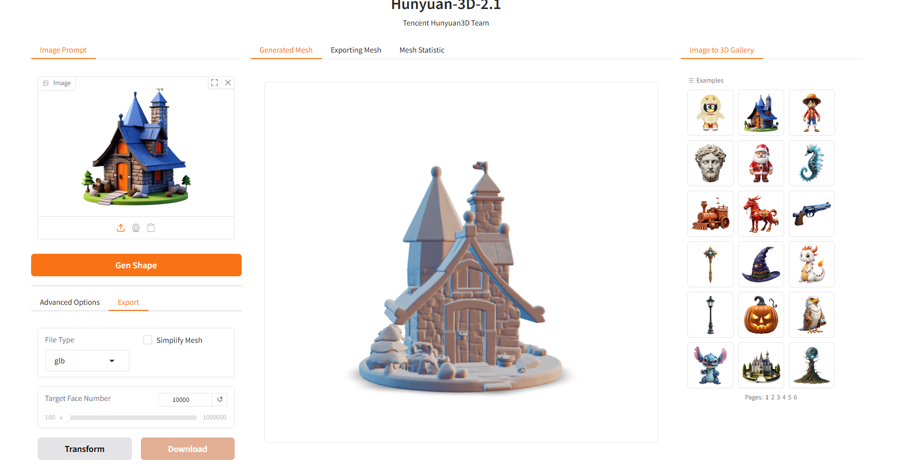 - Target Face Number: Specifies the maximum number of triangle faces to generate the 3D model.