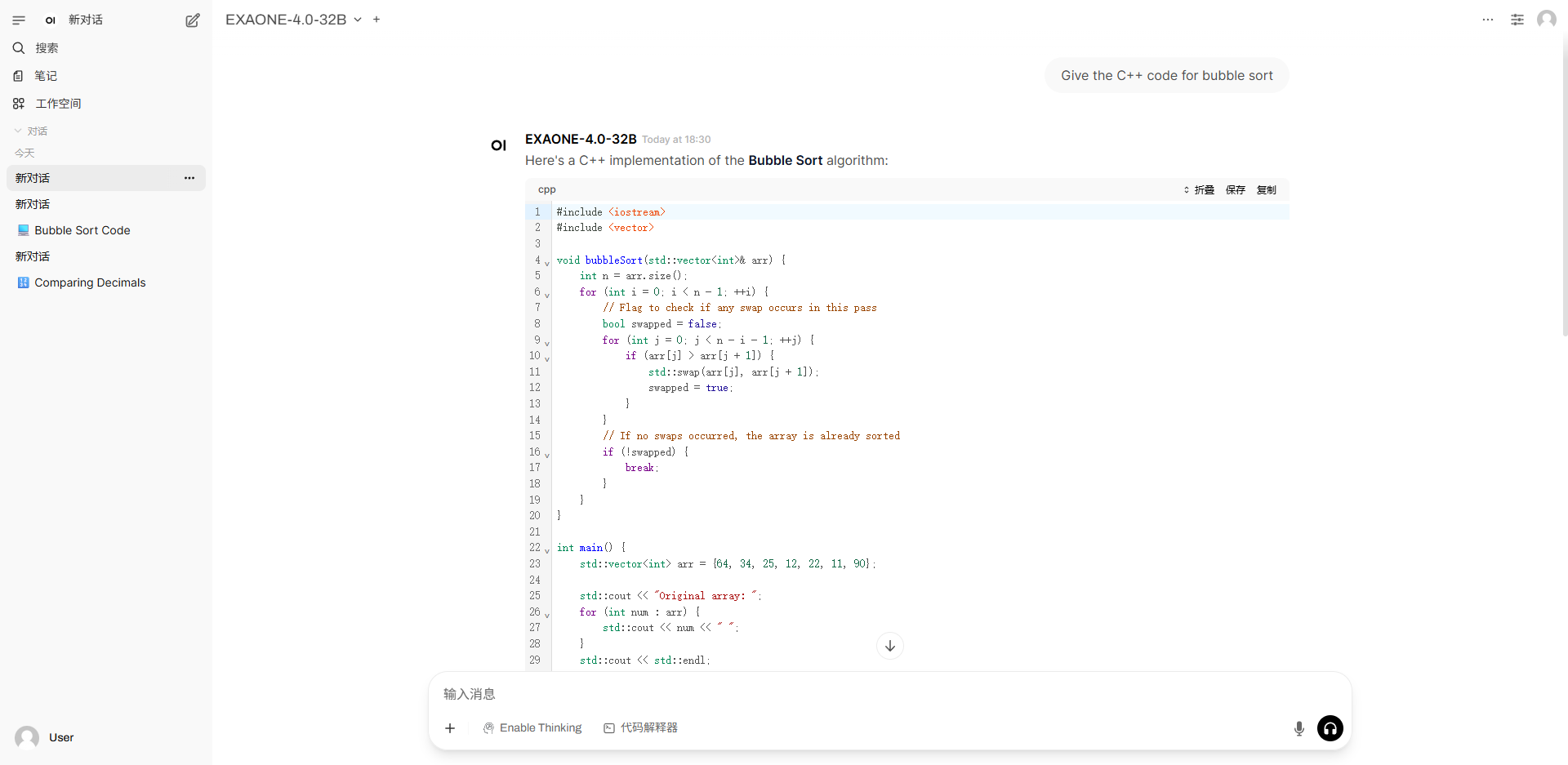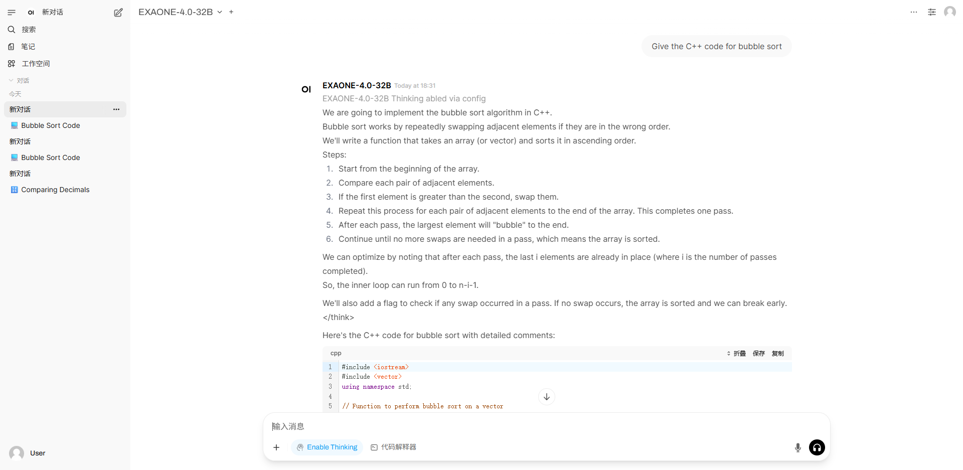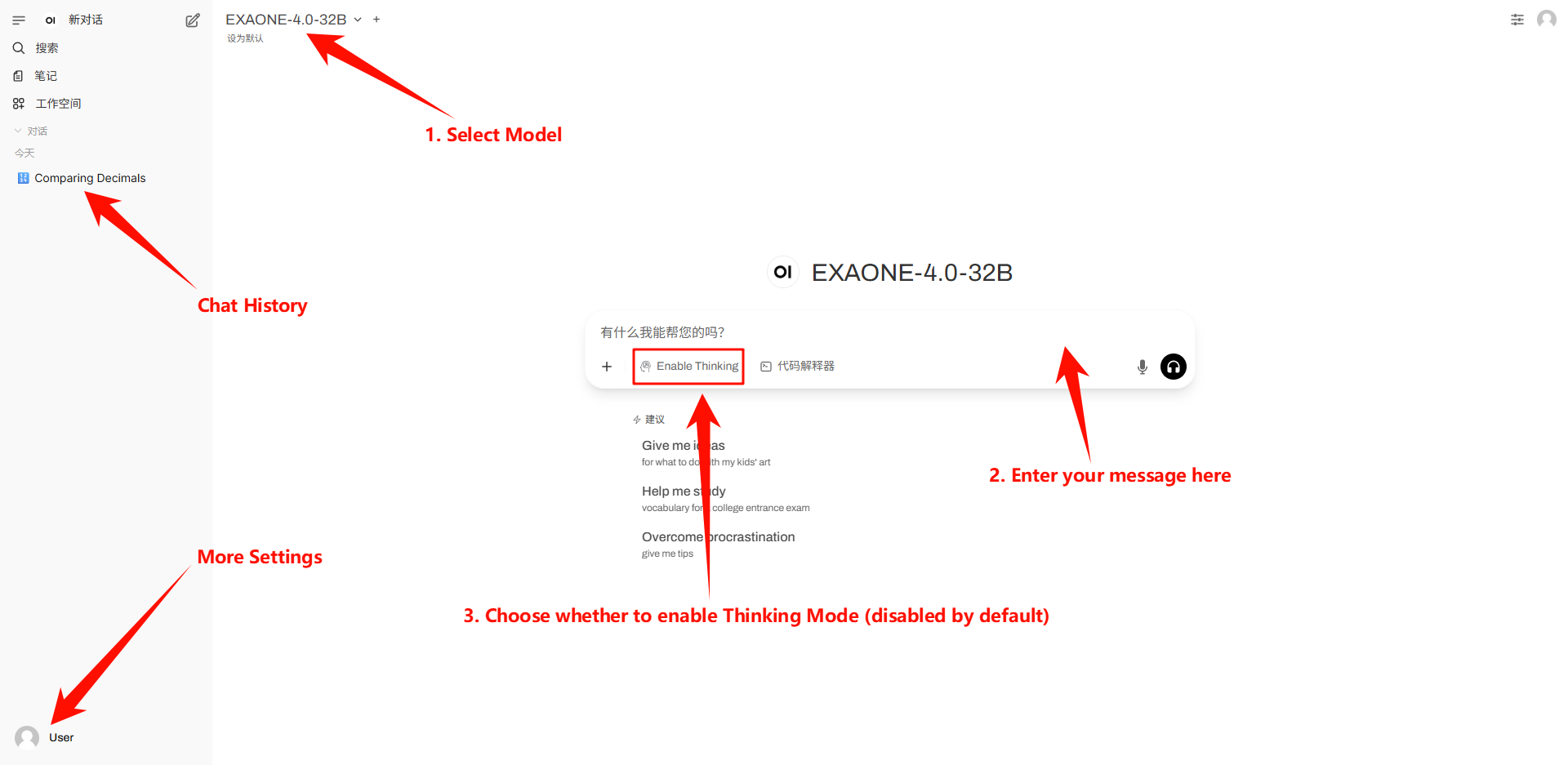 2. After entering the webpage, you can start a conversation with the model