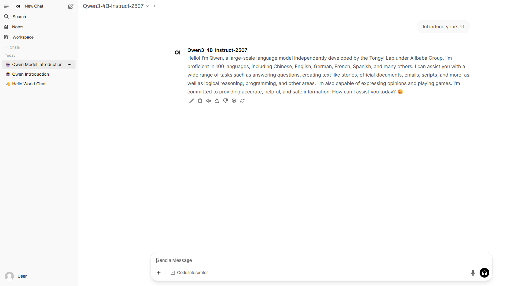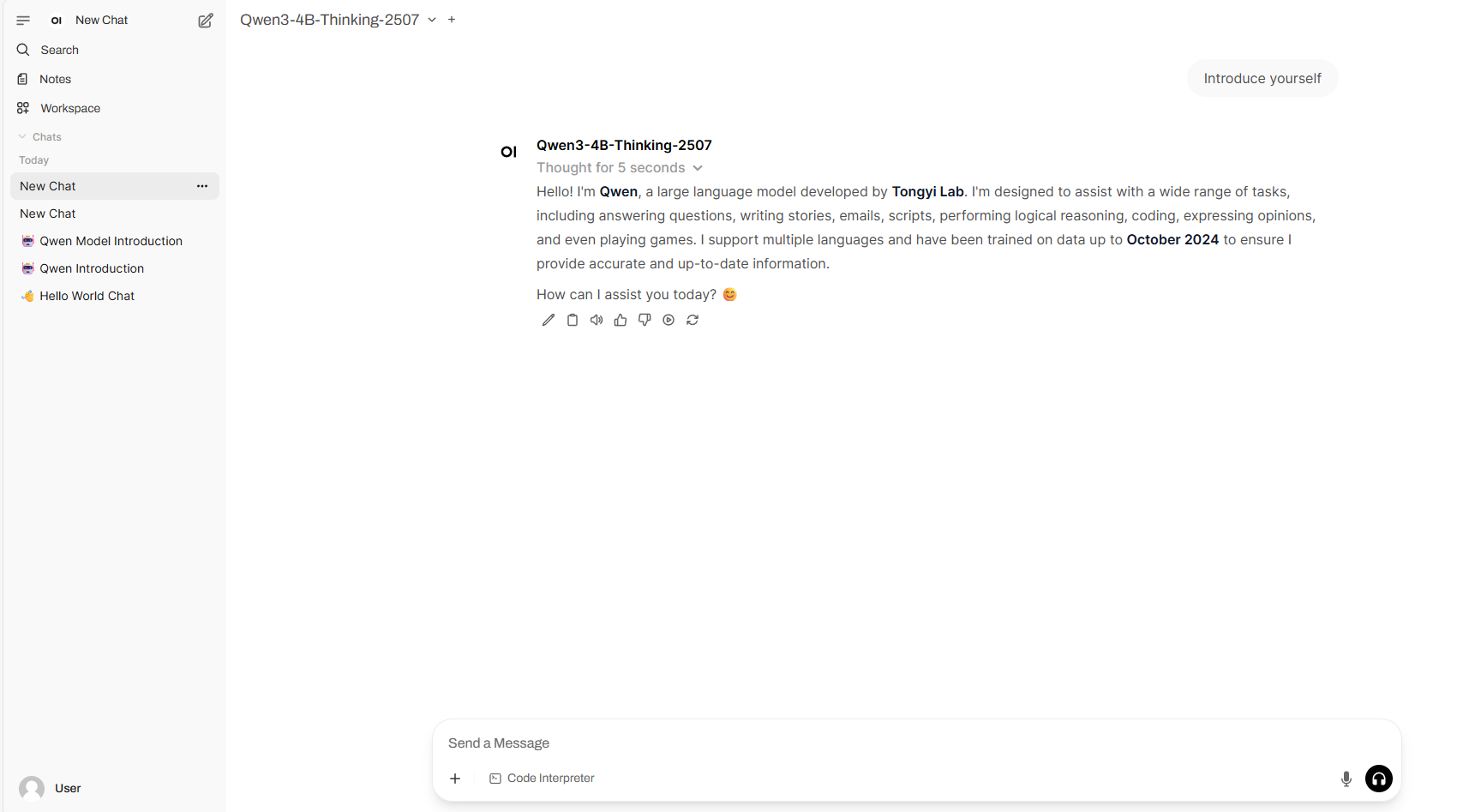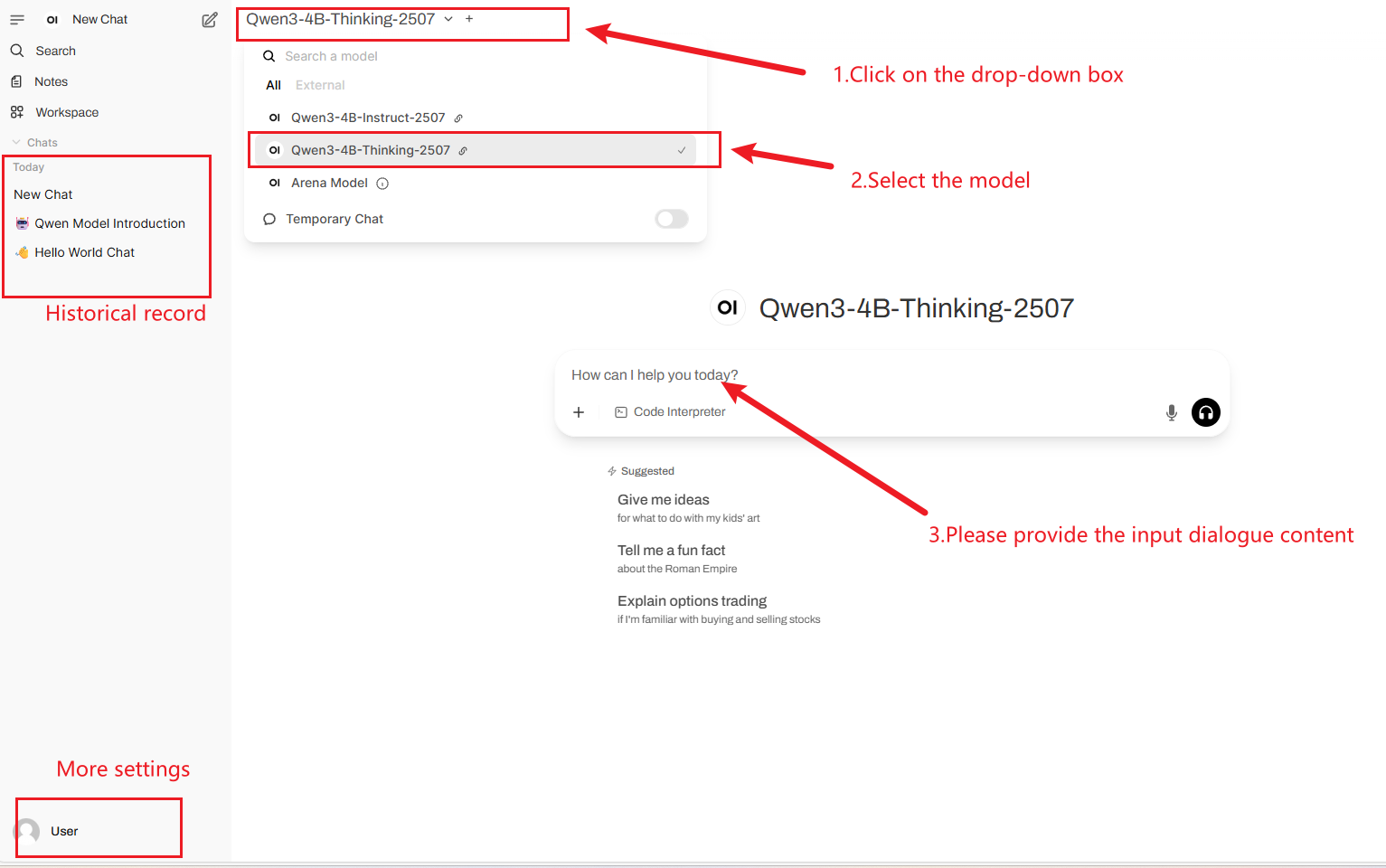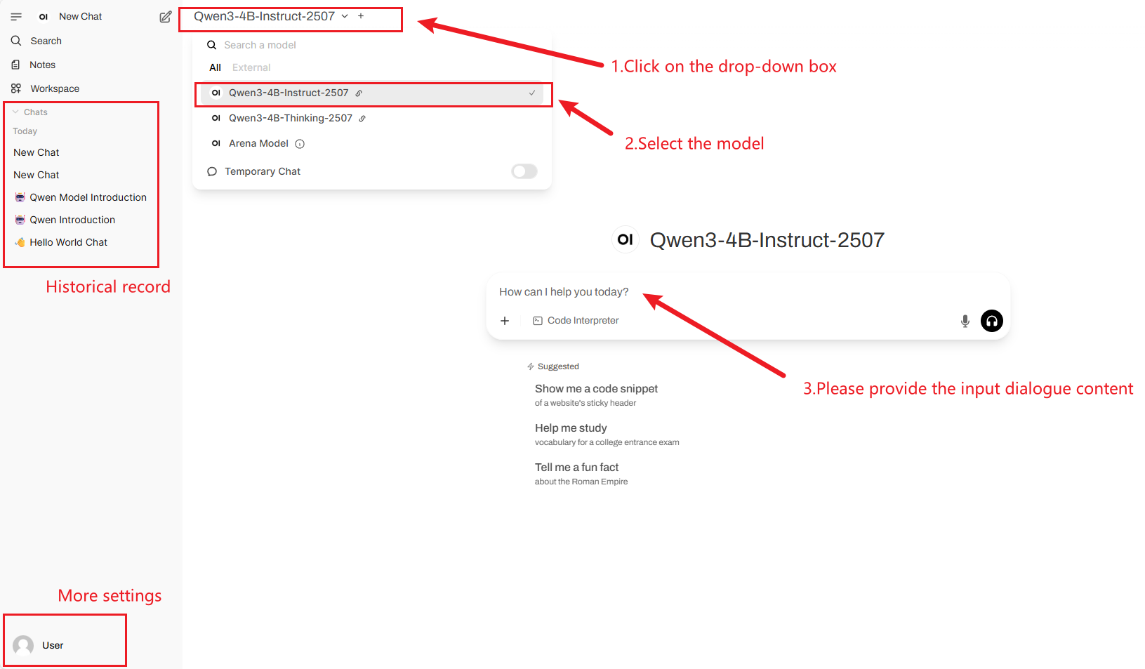 2. After entering the webpage, you can start a conversation with the model