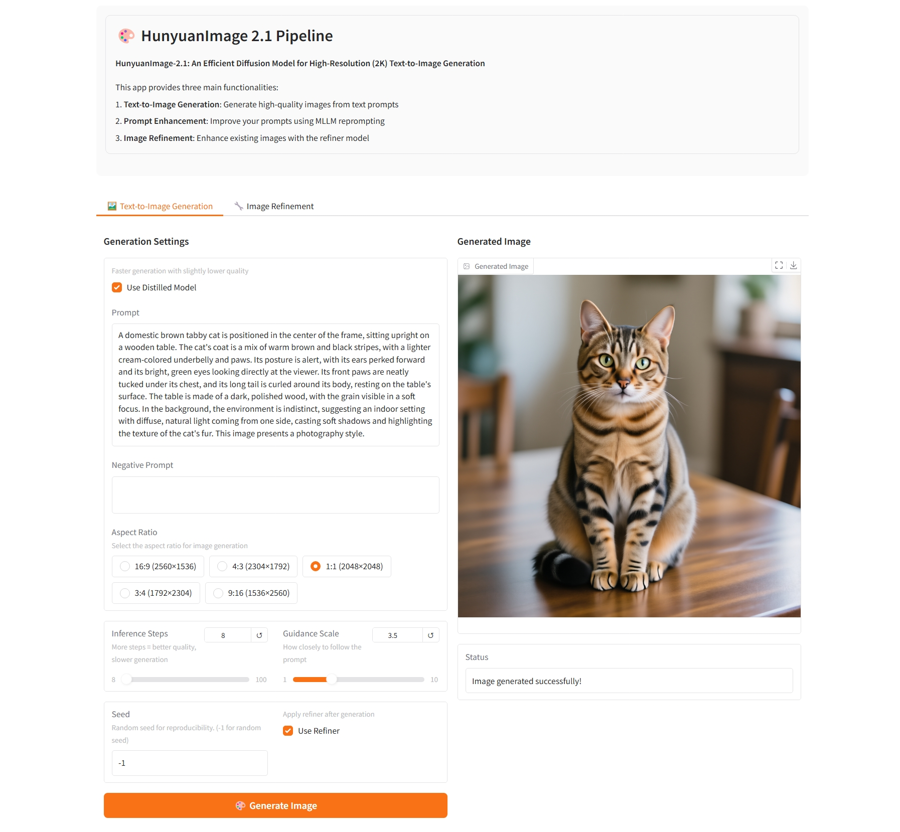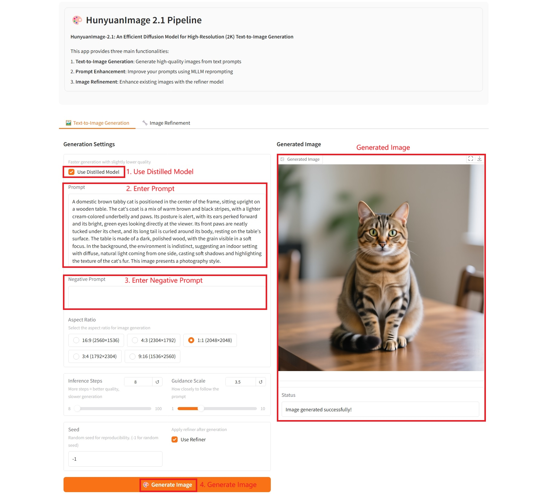 - Inference Steps: Inference steps. More steps = better quality, slower generation speed.
