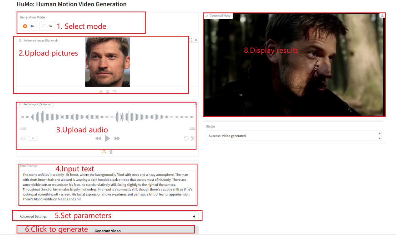 - Sampling Steps: The number of sampling steps used to control the quality and details of the generated video.